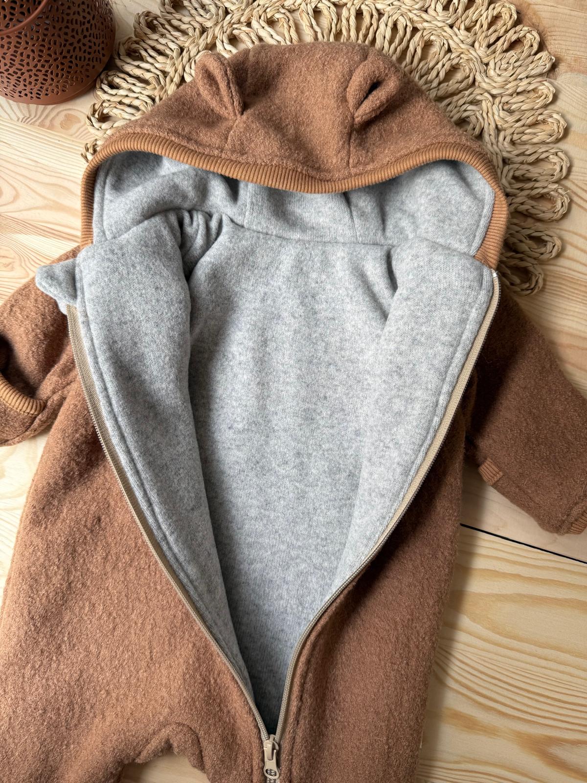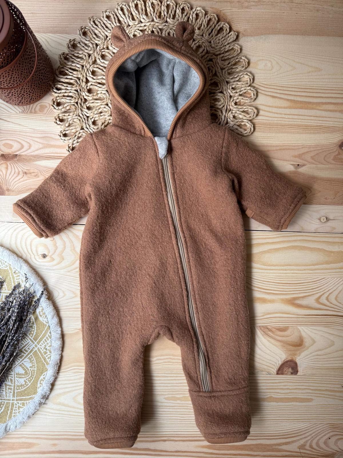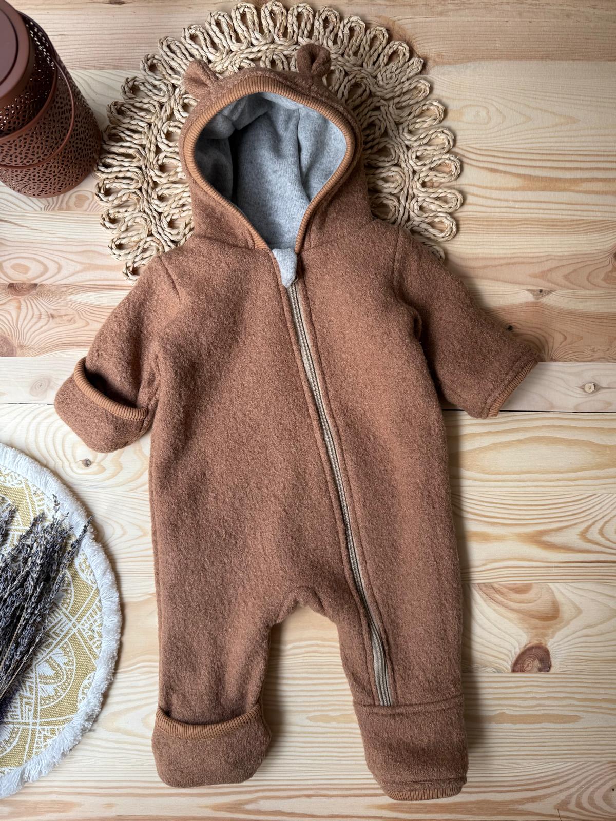 Baby overall din lana fiarta dublat cu merinos – Caffe Latte