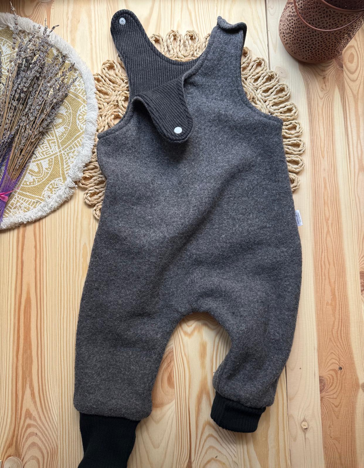 Overall premium din lână fiartă cu interior din merinos moale – protecție naturală împotriva frigului, umezelii și vântului. Dotat cu mănuși și botoși integrați, ușor de întors, pentru confort și flexibilitate în orice sezon. Ideal pentru micii exploratori.