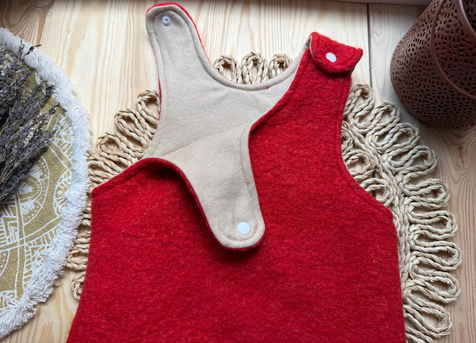 Overall premium din lână fiartă cu interior din merinos moale – protecție naturală împotriva frigului, umezelii și vântului. Dotat cu mănuși și botoși integrați, ușor de întors, pentru confort și flexibilitate în orice sezon. Ideal pentru micii exploratori.