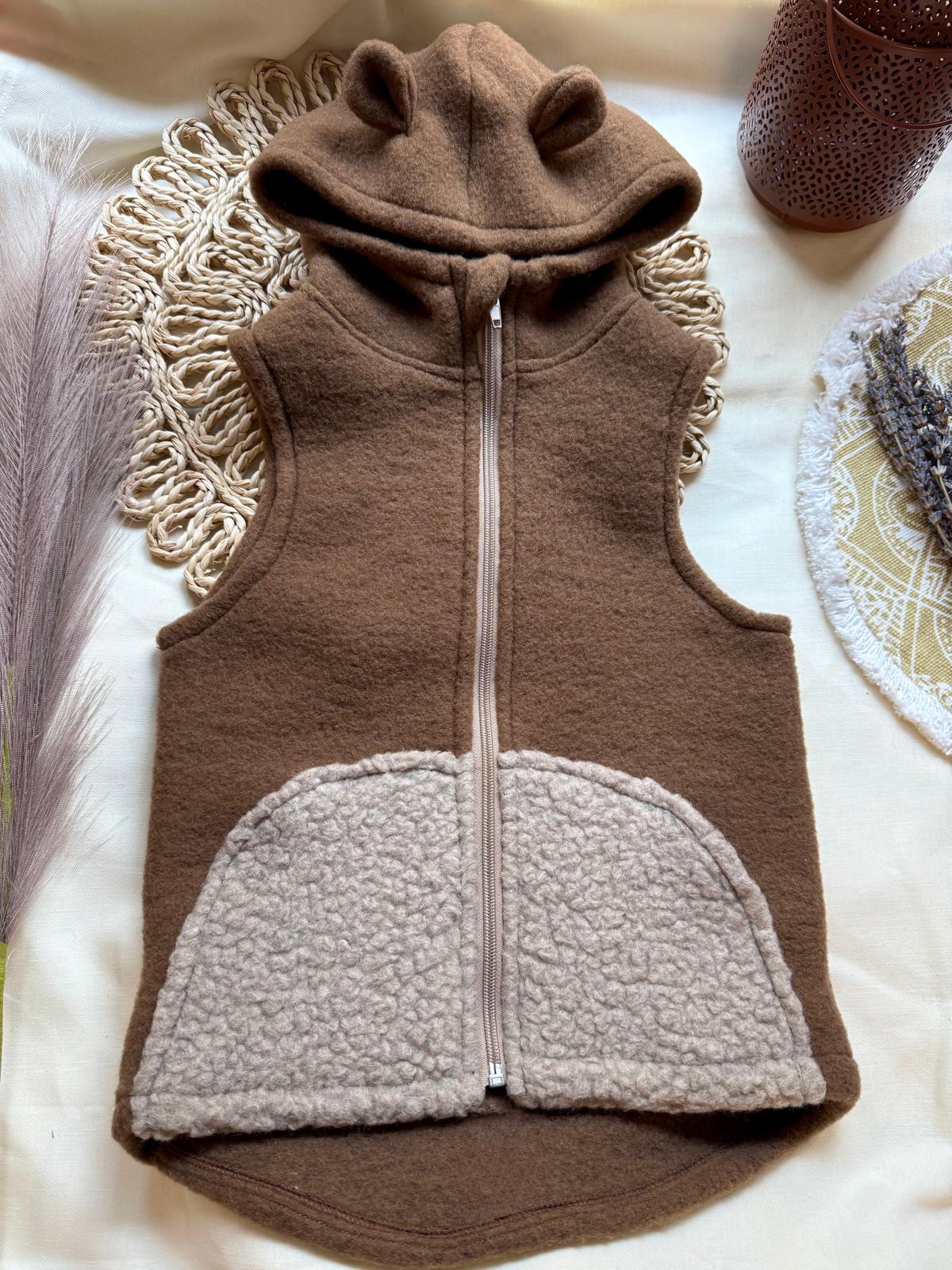 Overall premium din lână fiartă cu interior din merinos moale – protecție naturală împotriva frigului, umezelii și vântului. Dotat cu mănuși și botoși integrați, ușor de întors, pentru confort și flexibilitate în orice sezon. Ideal pentru micii exploratori.