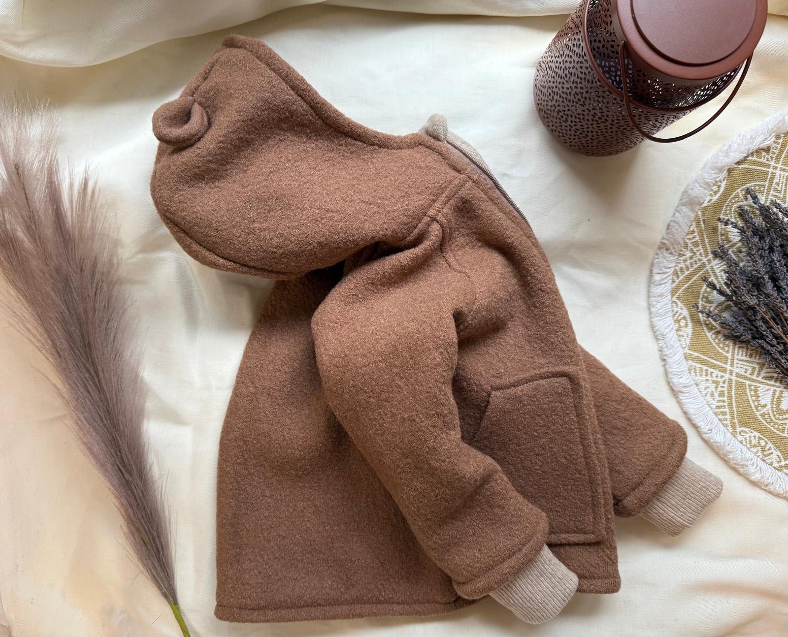 Această jachetă este gândită pentru confortul copilului în zilele reci, fiind realizată din lână fiartă groasă, un material natural, dens și rezistent, cu proprietăți excelente de termoreglare.