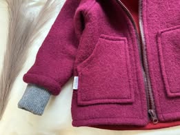 Această jachetă este gândită pentru confortul copilului în zilele reci, fiind realizată din lână fiartă groasă, un material natural, dens și rezistent, cu proprietăți excelente de termoreglare.