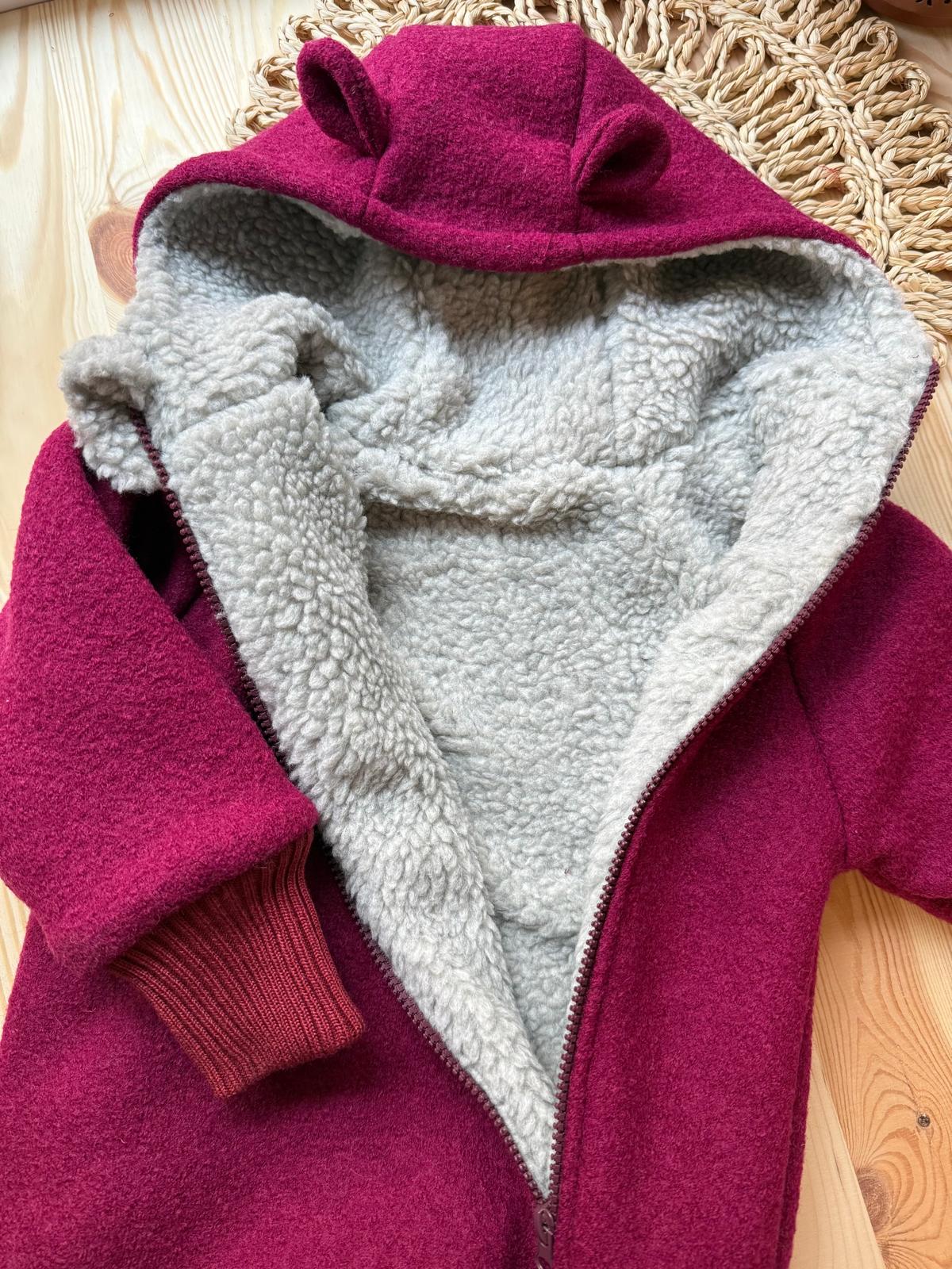 Overall premium din lână fiartă cu interior din merinos moale – protecție naturală împotriva frigului, umezelii și vântului. Dotat cu mănuși și botoși integrați, ușor de întors, pentru confort și flexibilitate în orice sezon. Ideal pentru micii exploratori.