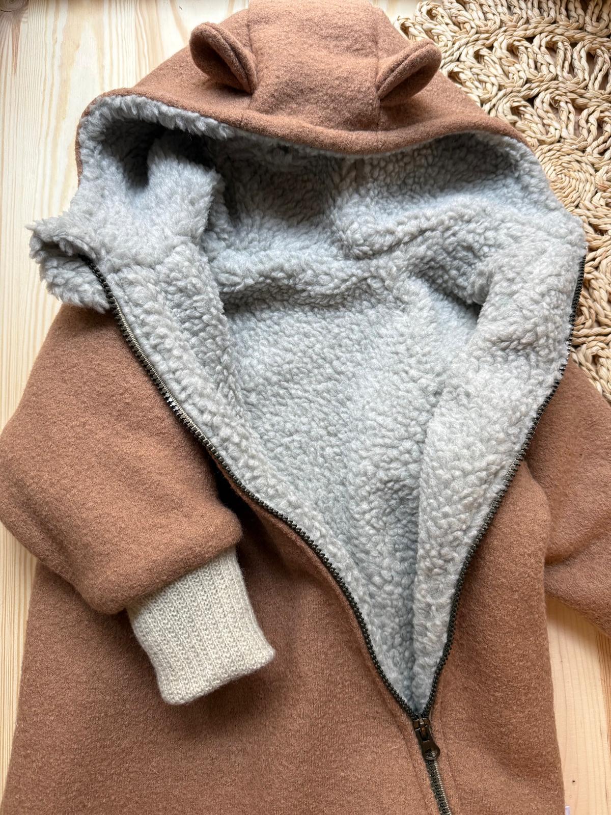 Overall premium din lână fiartă cu interior din merinos moale – protecție naturală împotriva frigului, umezelii și vântului. Dotat cu mănuși și botoși integrați, ușor de întors, pentru confort și flexibilitate în orice sezon. Ideal pentru micii exploratori.