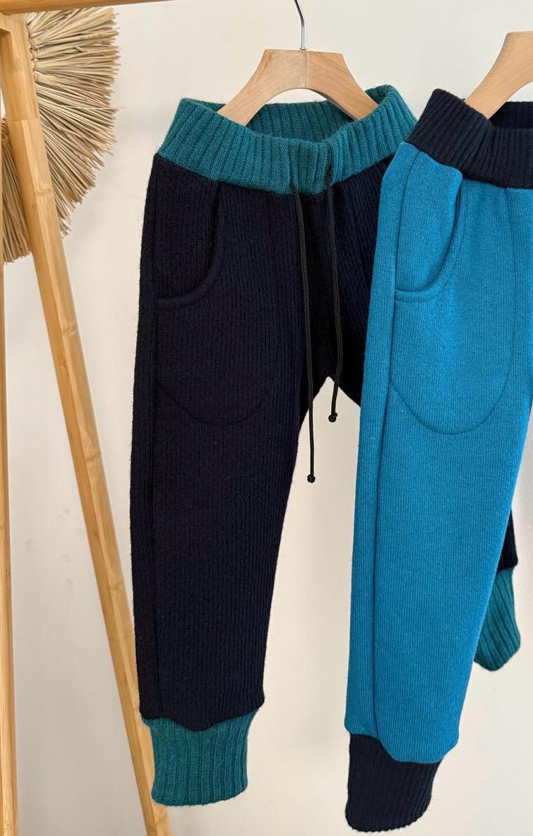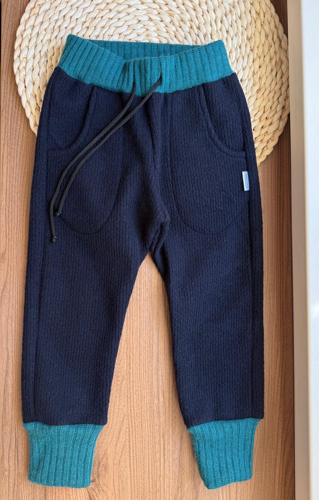 Pantalonii sunt realizați din lână fiartă 400 GSM și sunt dublați integral cu lână merinos 250 GSM, sunt prevăzuți cu șnur pentru ajustarea taliei și manșete mai lungi pentru o purtare îndelungată.