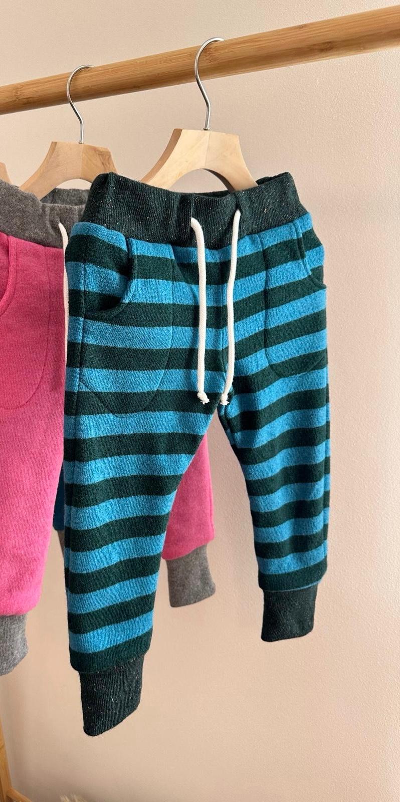 JOGGERS dublati GREEN / BLUE STRIPES 100% lana merinos.
